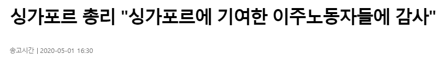 싱가포르 총리가 이주노동자들에게 감사하다는 뜻을 전했음.