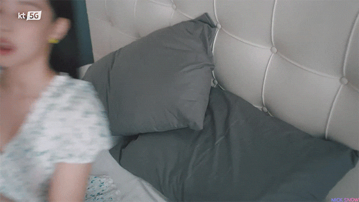 제니 원피스를 입고 제니레드 노트20을 가지고 침대에 눕는 제니...