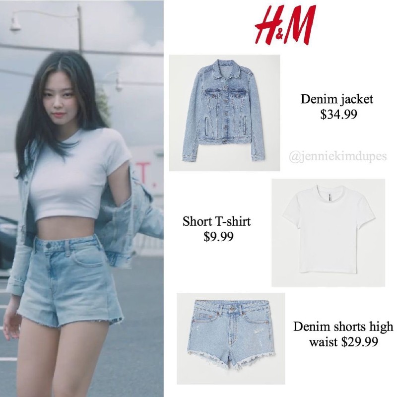 광고에서 제니가 입고나온 청자켓과 핫팬츠는 H&M 데님 자켓과 청 핫팬츠