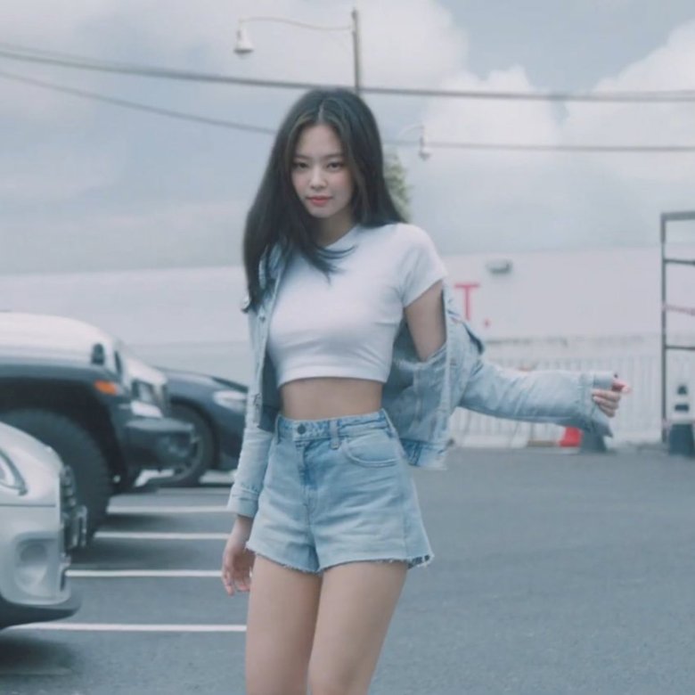 광고에서 제니가 입고나온 청자켓과 핫팬츠는 H&M 데님 자켓과 청 핫팬츠
