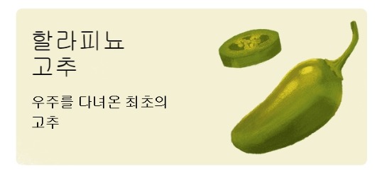 할라피뇨 고추는 우주를 다녀온 최초의 고추라는 소개가 나온다.