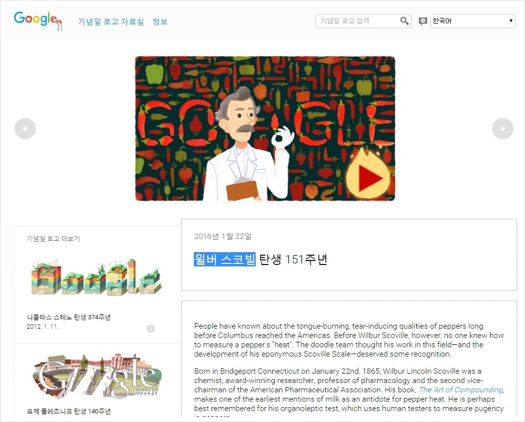 나름 윌버 스코빌은 인기 있는 과학자 중의 하나이거나, 외국인들도 고추의 맛을 즐긴다는 반증이 아닐까?