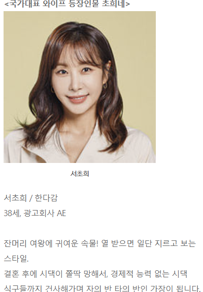 국가대표 와이프에서는 서보리라는 성격 화려한 여성으로서 등장하며, 어려운 환경에서도 긍정적으로 살아가는 모습을 보여줄 것으로 기대됩니다.