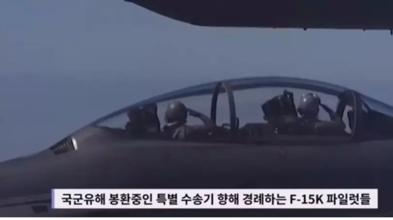 국군 유해봉환 사상 첫 F-15K 전투기 호위