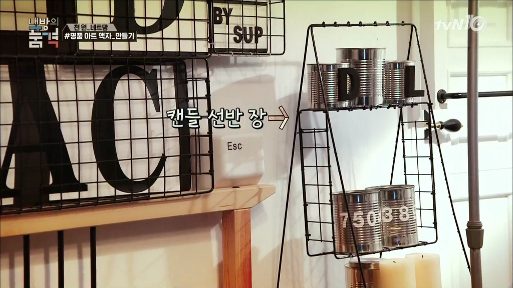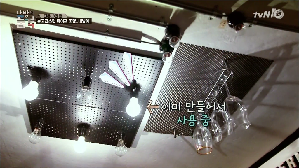 네트망과 타공판을 이용한 인테리어.