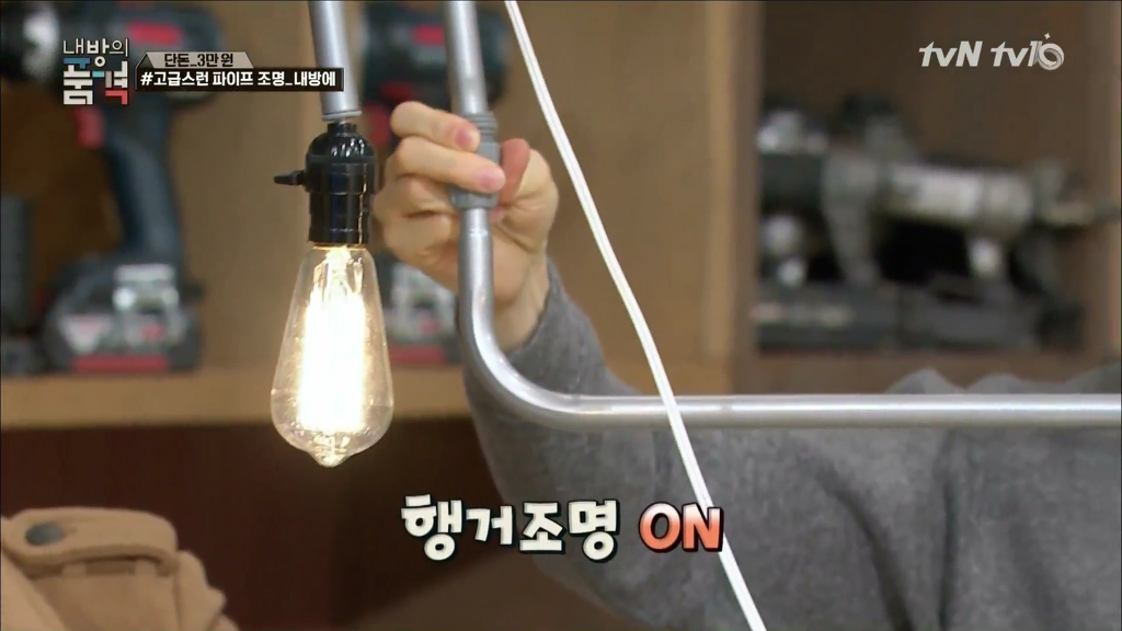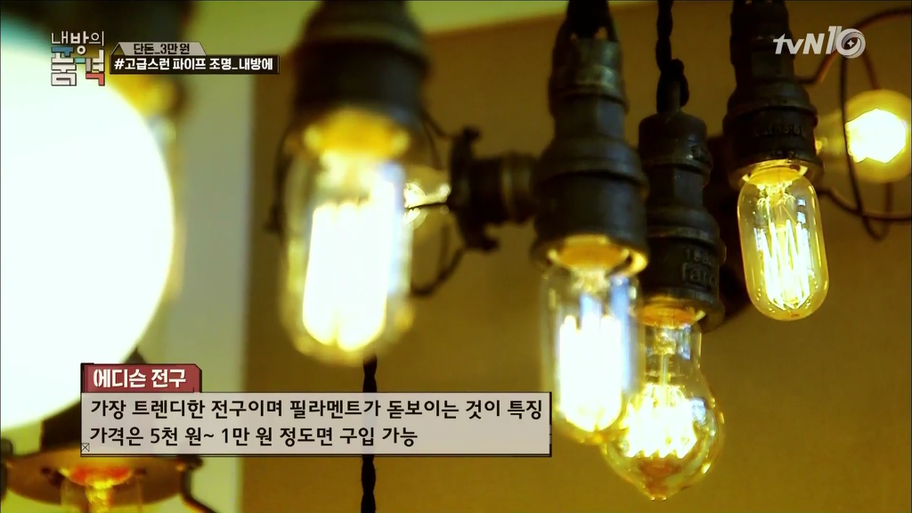 파이프 조명에 쓰인 전구는 에디슨 전구로.