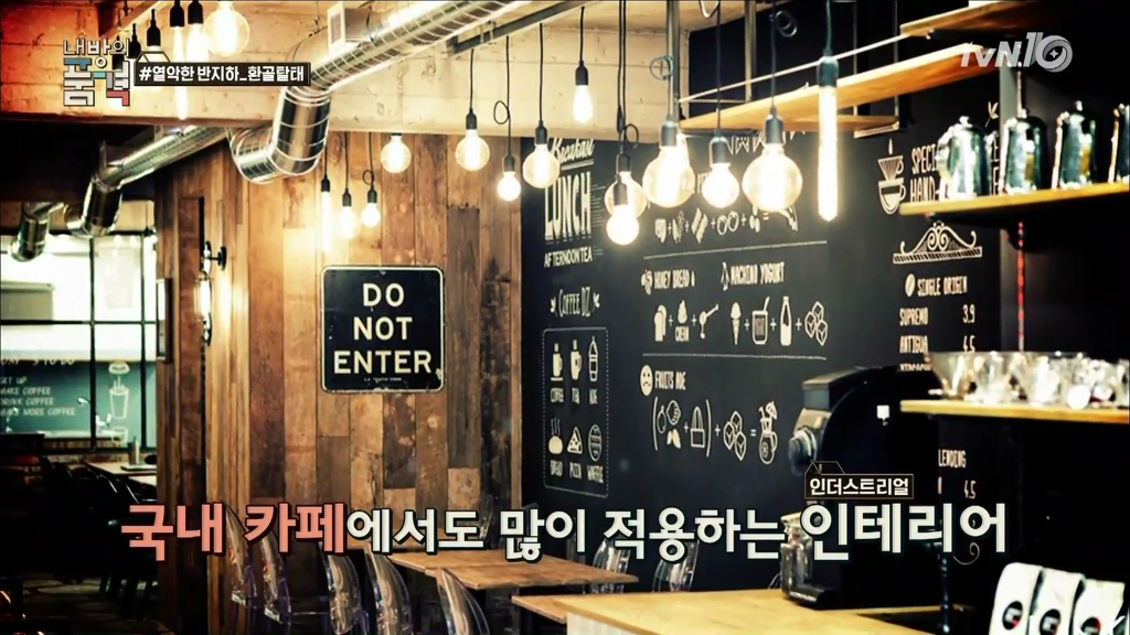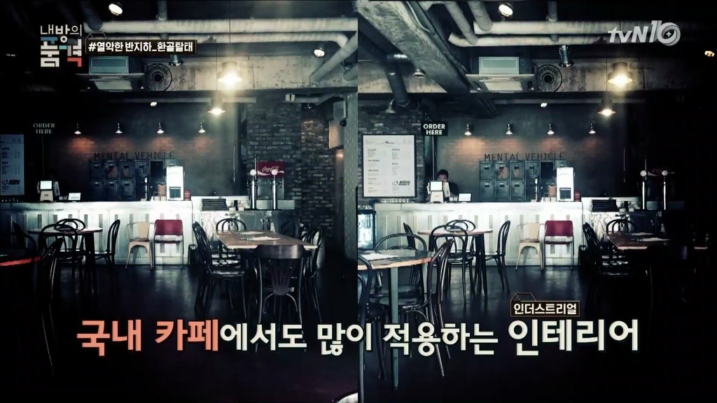 국내 카페에서도 많이 적용되는 인더스트리얼 인테리어.