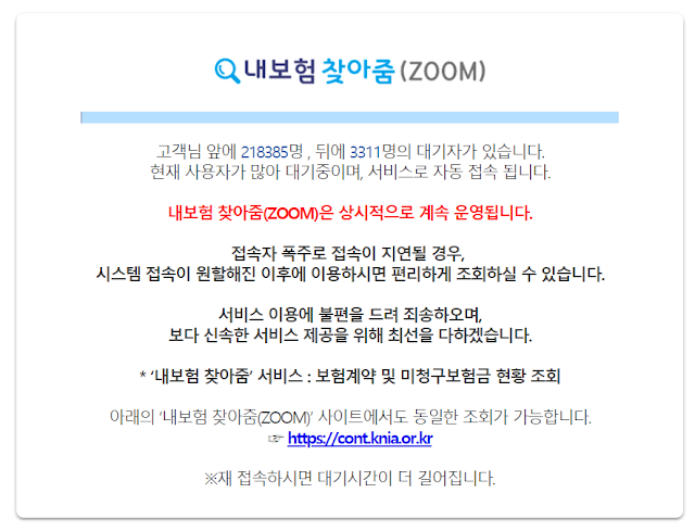 같은 기간 누적 조회 결과 처리건수 기준으로 총사용자는 474만 명이 이용했고, 최근에도 일평균 1만 명 안팎이 내 보험 찾아줌 사이트 조회 서비스를 꾸준히 이용하고 있습니다.