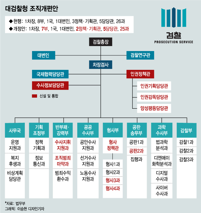 법무부 검찰 조직개편을 앞두고 검찰 조직 개편 최종안이 마련됐다.