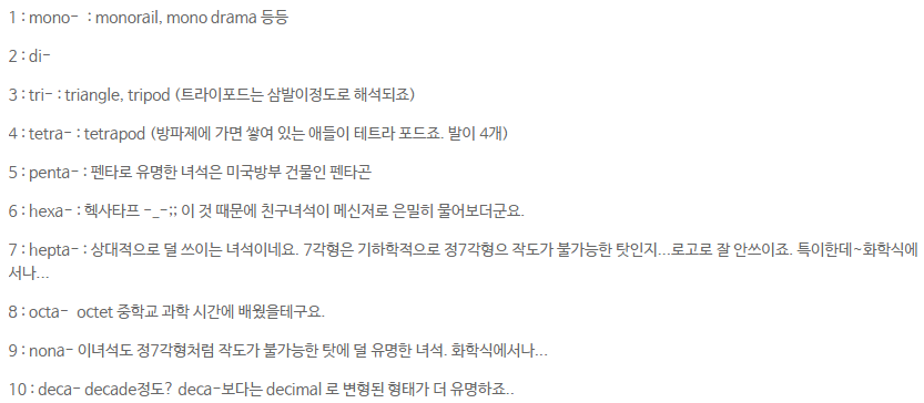 모노, 디, 트리, 테트라, 헥사, 펜타, 헵타, 옥타