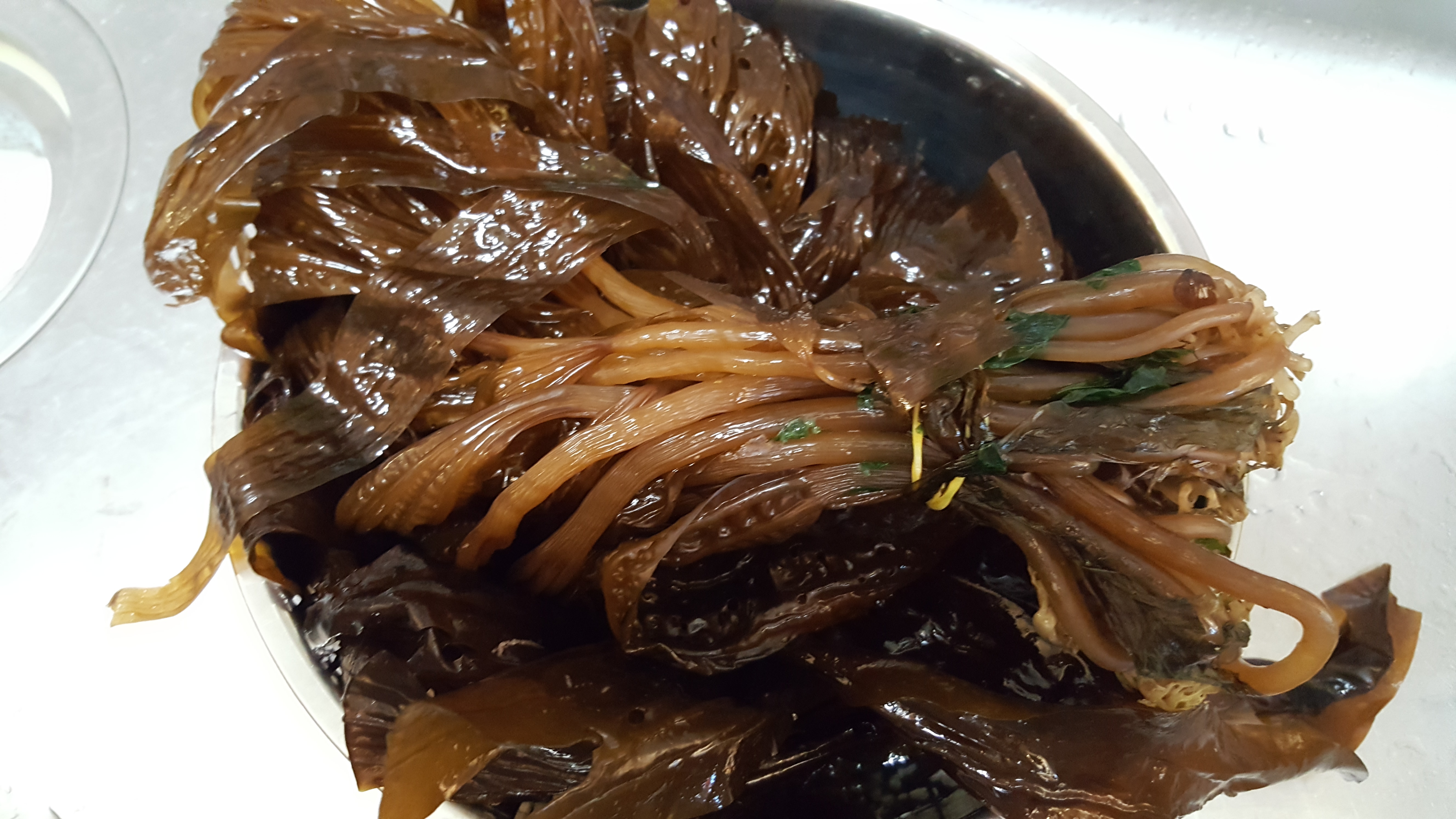 - 물미역을 먹기 좋은 크기로 잘라줍니다.