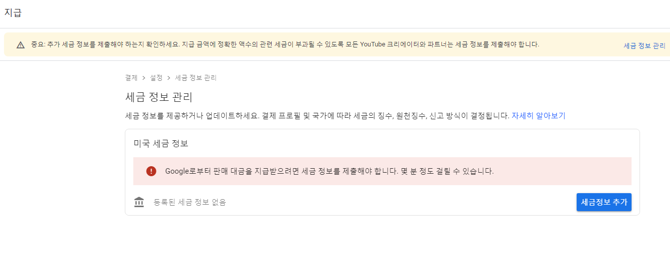 저는 일단 경고가 떠 있었기 때문에 세금정보를 입력해야만 했습니다.