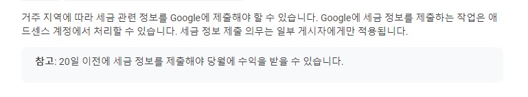 거주 지역에 따라 세금 관련 정보를 Google에 제출해야 할 수 있습니다. 구글에 세금정보를 제출하는 작업은 애드센스 계정에서 처리할 수 있습니다. 세금정보 제출의무는 일부 게시자에게만 적용됩니다.