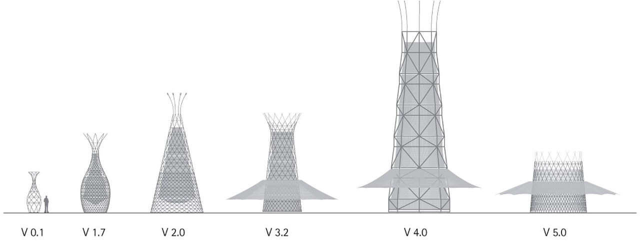 와카워터는 거대한 호리병 모양의 탑으로 구성되어 있습니다. 이 탑은 강한 바람에도 견딜 수 있는 튼튼한 구조를 가지고 있으며, 내부에는 특별한 매쉬 그물이 설치되어 있습니다. 이 매쉬 그물은 공기 중의 수분을 응축시켜 이슬이 형성되도록 돕습니다.