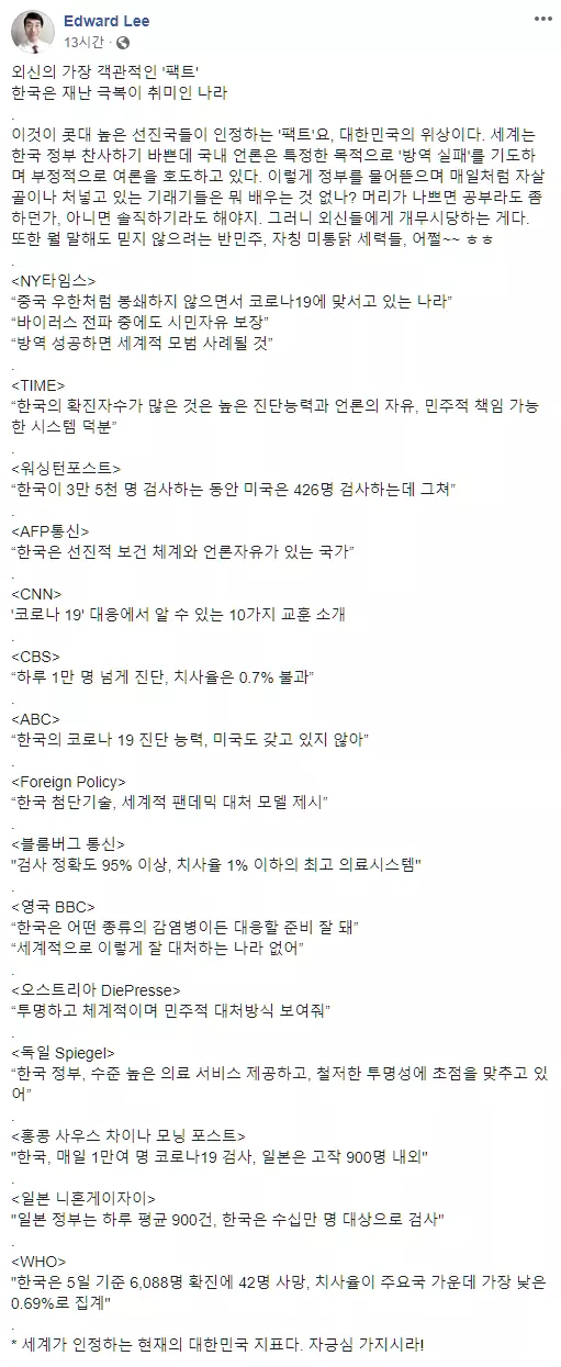외신이 바라본 가장 객관적인 한국의 코로나19 극복 팩트