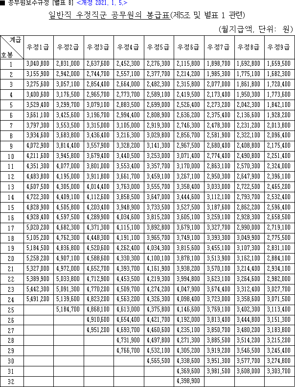 | 2021년 공무원 봉급 인상률 0.9% 반영 2021 공무원 봉급표 (0) | 2020.09.09 |