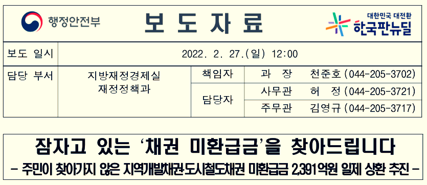 - 도시철도채권: 서울, 부산, 대구에서 발행, 7년 만기 일시상환