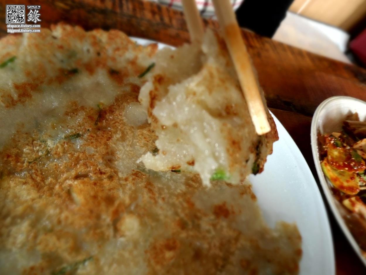 감자전은 고소하고 바삭한 튀김 표면과 부드러운 감자의 조화가 일품입니다. 그 자태는 곱고 맛 또한 일품이죠.