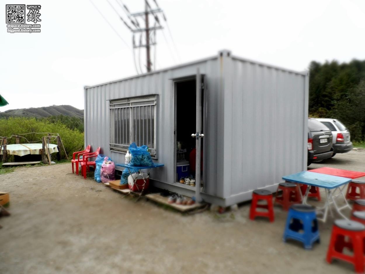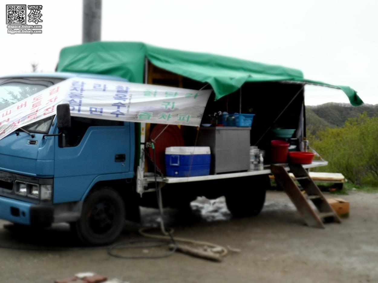 무이쉼터의 널직한 공터에는 작은 트럭 한 대와 컨테이너, 그리고 원형의 평상이 자리하고 있습니다. 이곳에서는 감자전과 도토리묵을 맛볼 수 있는데, 그 맛은 정말 놓칠 수 없는 맛 중 하나입니다.