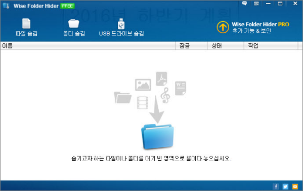 - 폴더 숨김: Wise Folder Hider를 통해 원하는 폴더를 숨기거나 마우스로 끌어서 놓을 수 있습니다.