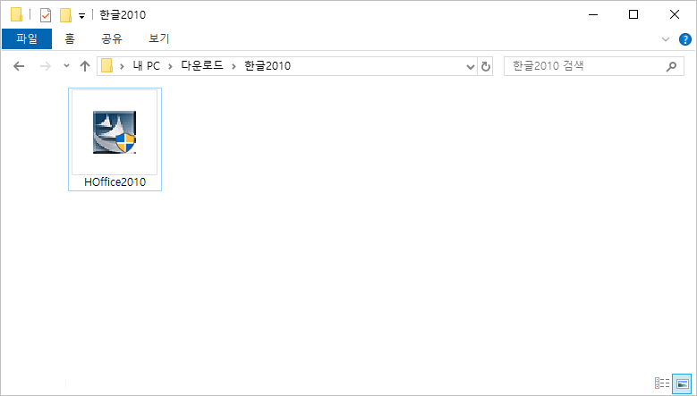 2. 이제 다운로드한 한글2010 설치 파일 'HOffice2010.exe'을 더블 클릭해 실행시킵니다.