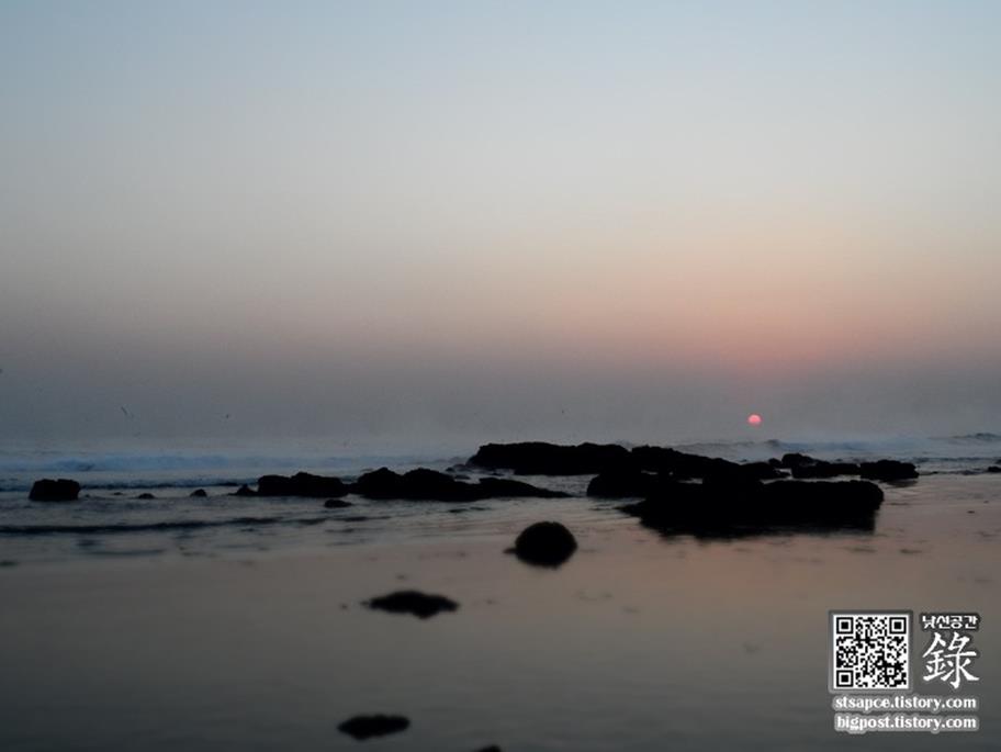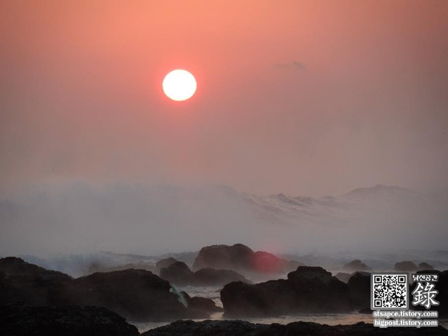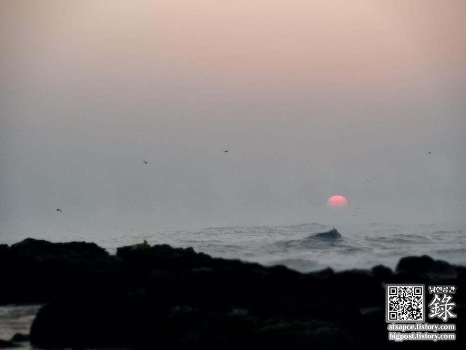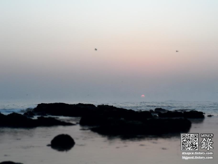 포항 호미곶 앞바다의 해돋이 축제에서 수평선에 태양이 떠오르는 모습을 찍고 싶었지만, 아쉽게도 그런 날은 일 년에 5일 정도밖에 안 된다는군요.