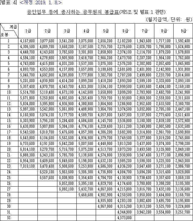 2019년 공무원 급여표를 살펴 보죠.