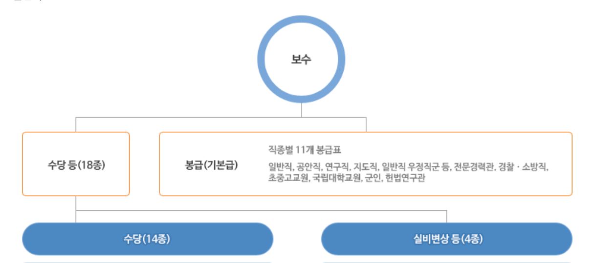 공무원 보수체계: 기본급(호봉표) + 수당과 성과급