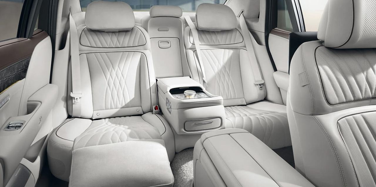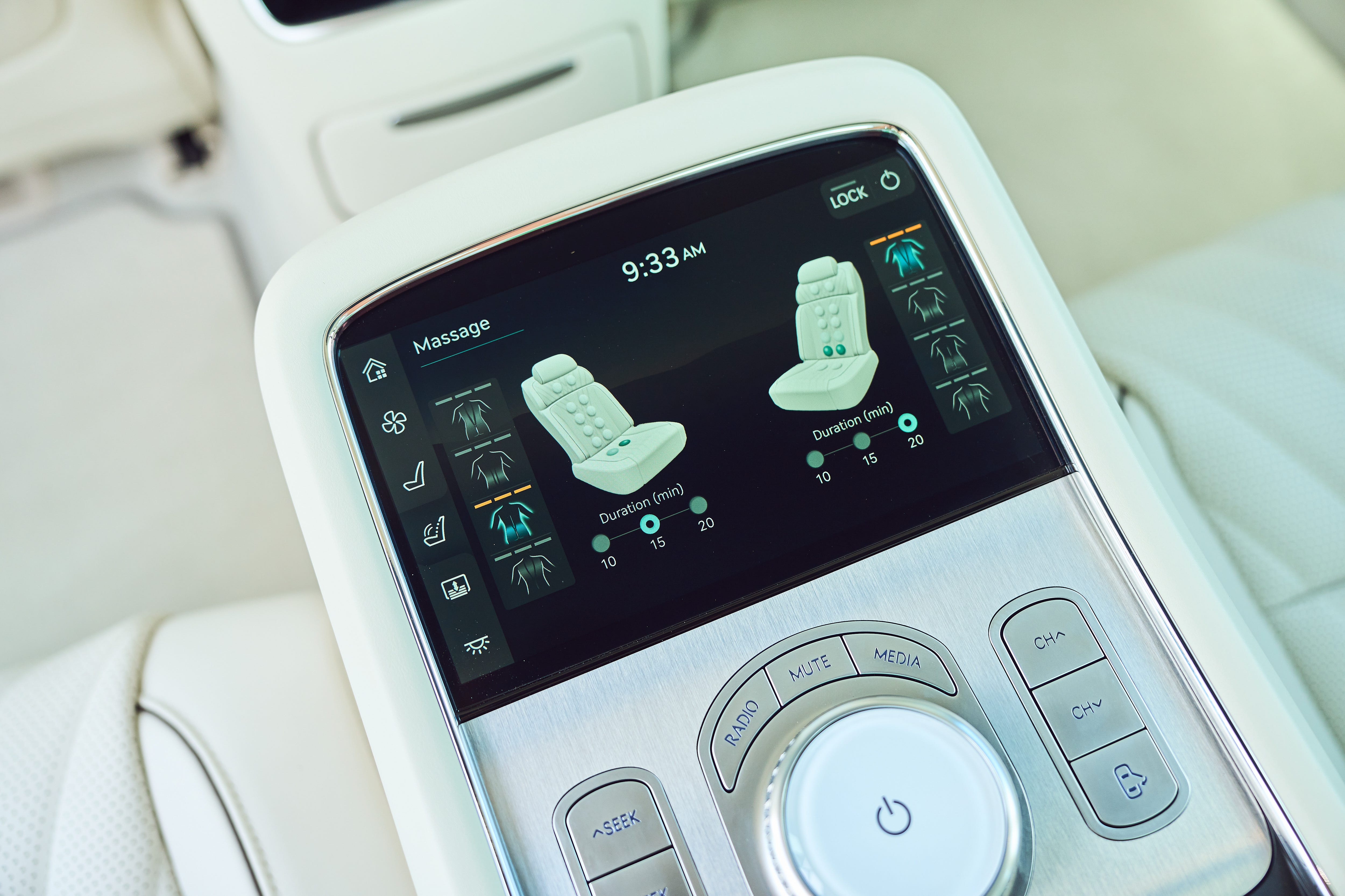 나파 가죽 시트, 고급 우드 트림, 금속 소재의 스위치 및 악센트가 확대 적용되었고, 특히 2열 탑승자 경험을 고려한 리클라이닝 시트 및 마사지 시트, 개별 공조 조절 기능 등이 포함되어 탑승자 중심의 설계라는 점이 강조됩니다.