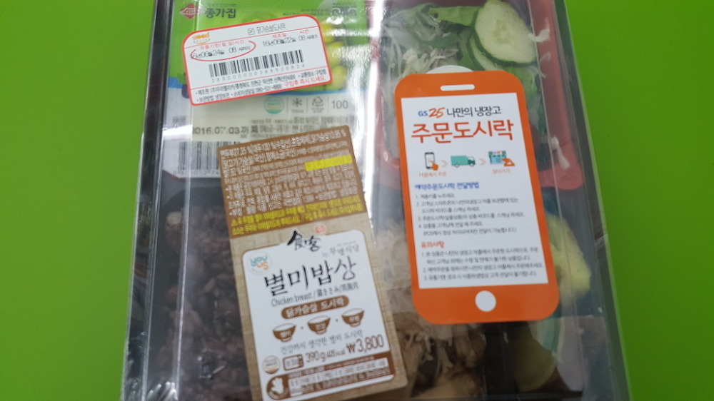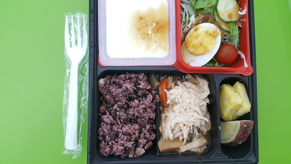 처음 도시락을 뜯어보면, 건강해질 것 같은 그런 비주얼이 눈에 띕니다. 아마도 닭가슴살과 연두부, 흑미밥 등의 웰빙 성분 때문일 겁니다. 가격은 3,800원이지만 500원 할인을 받아 실제로는 3,300원에 구매했습니다. 비교를 위해서 말하자면, 구운 계란 3개가 2,800원인데, 이 도시락은 그보다도 가격이 착한 편입니다.