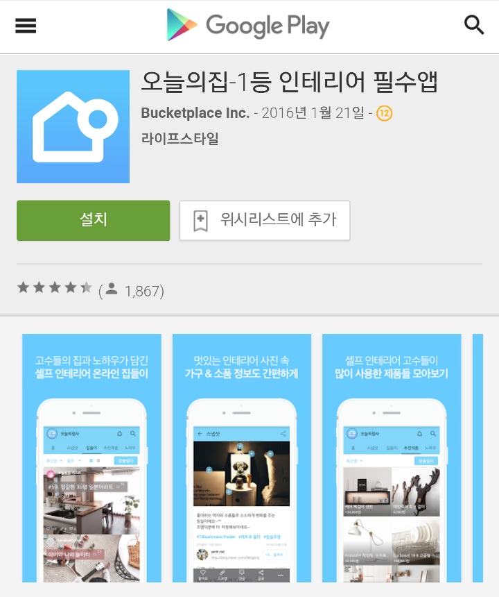 인테리어 앱은 tvn 내방의품격과 제휴를 맺은 버킷플레이스의 오늘의집 어플.