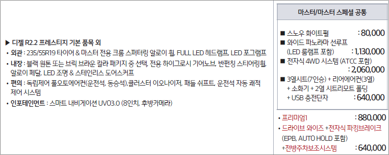 트림명 : 마스터 디젤 R2.2 마스터 스페셜