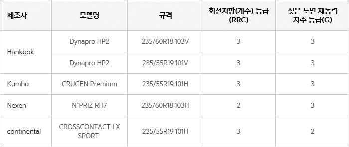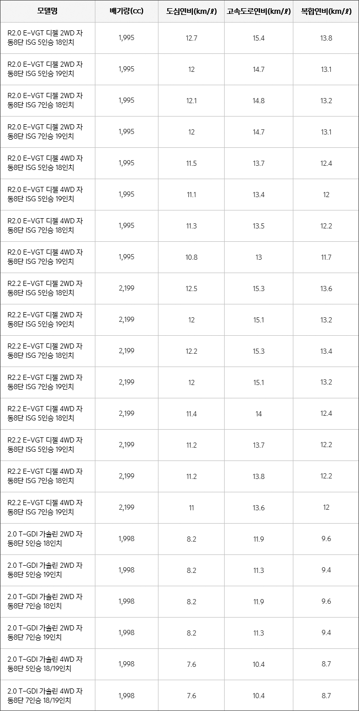 자세한 쏘렌토 2019 모델별 연비는 다음 표를 참고.