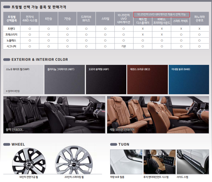 튜온 장착 시 쏘렌토 럭셔리 트림은 커스터마이징 선택이 불가하다.