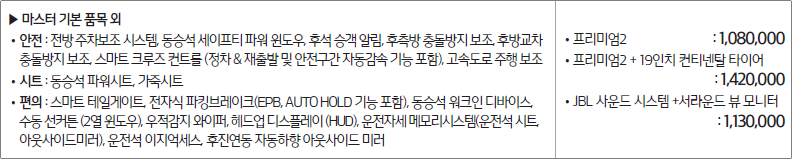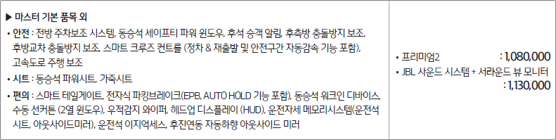 아래는 인기 트림인 마스터 트림입니다.
