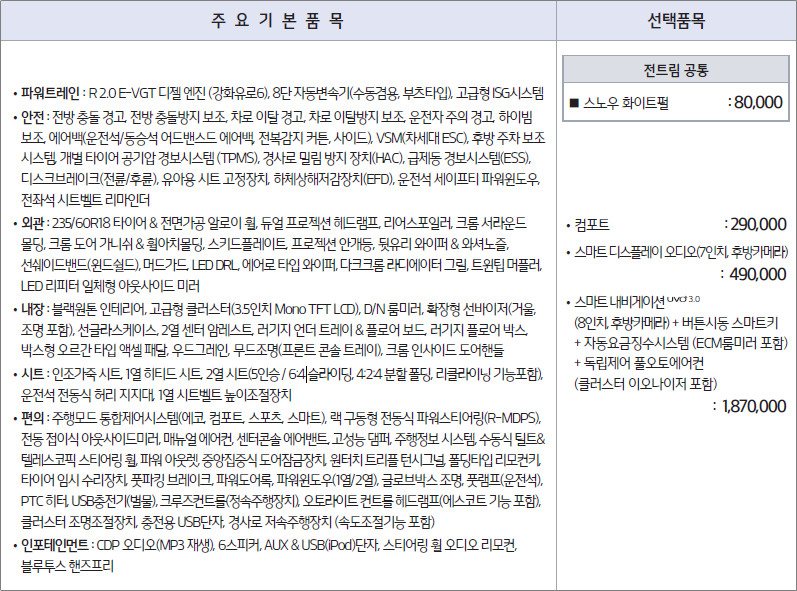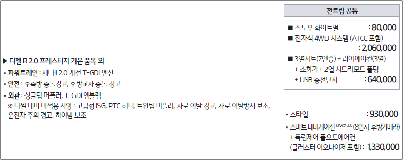트림명 : 디젤 R2.0 프레스티지