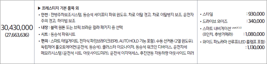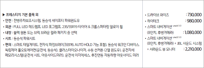 트림명 : 가솔린 2.0 프레스티지