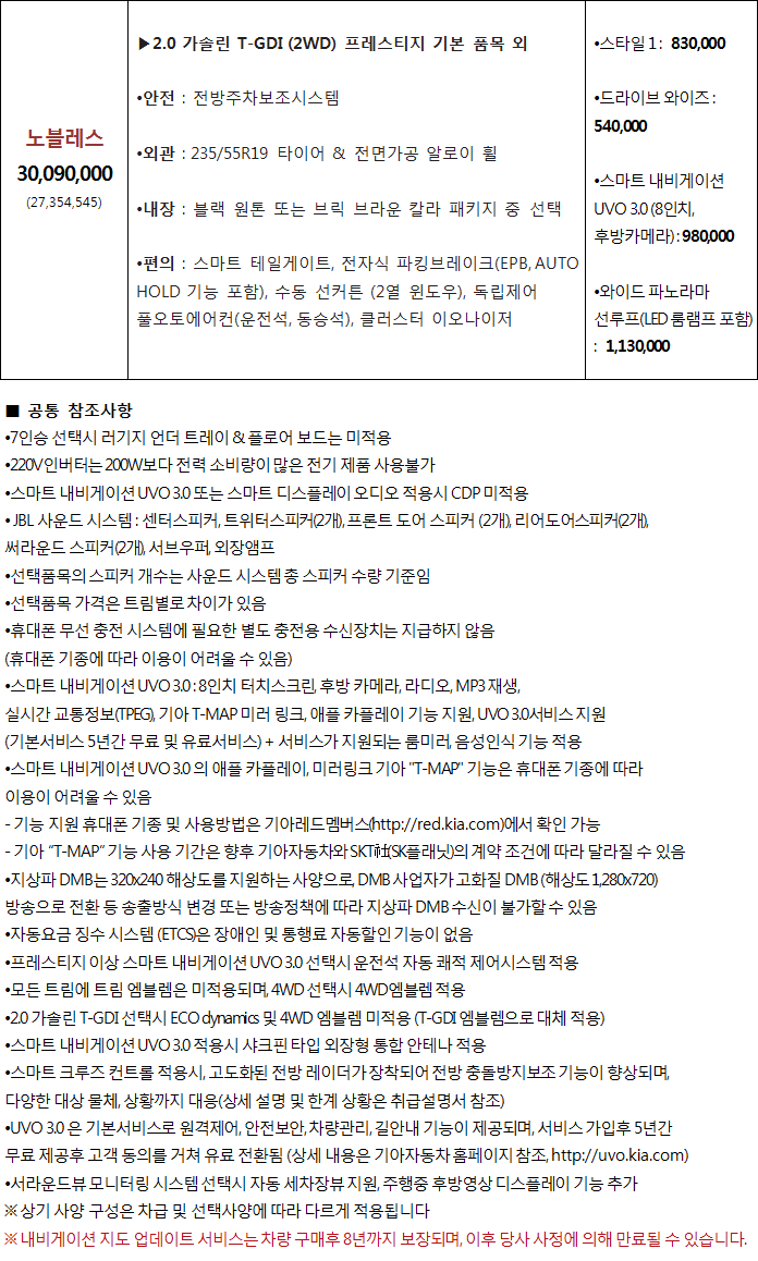 쏘렌토 가솔린 노블레스 가격은 30,090,000원입니다.