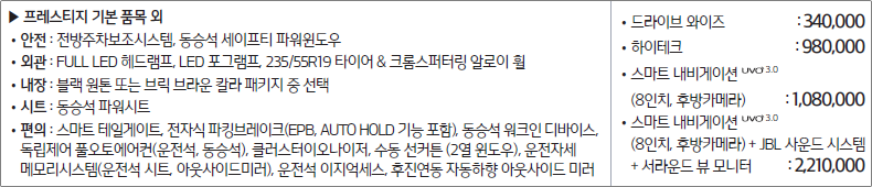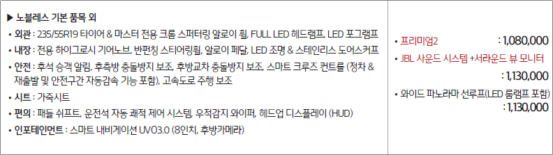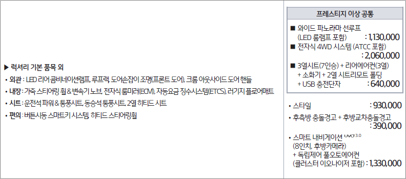 가솔린 2.0 T-GDI : 프레스티지, 노블레스, 마스터 스페셜