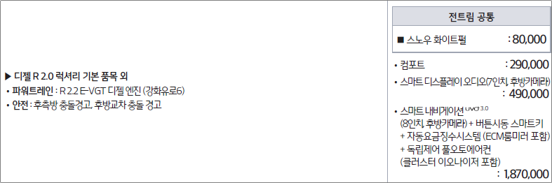 트림명 : 디젤 R2.2 럭셔리