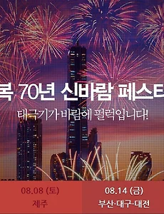 매년 10월 첫째주 토요일에 개최되는 서울세계불꽃축제의 주최자인 한화그룹에서 광복70주년을 맞아, 신바람 페스티벌에서 서울,광주,대구,부산에서 불꽃놀이 30만발의 희망의 불꽃축제를 연다고 한다. 한화그룹은 보도자료를 통해서는 경제활성화, 내수소비촉진등을 희망하는 염원을 담아 전국 4대도시에서 성대한 불꽃축제를 개최해서, 내수경기 새로운 도약의 불씨로 삼을 것이라고 밝혔다. 특히 8월15일에 서울의 광복70년 신바람 페스티벌은 LG그룹과 CJ그룹이 주최하지만, 한화그룹에서 후원하는데, 15일 광복절의 서울 불꽃놀이 장소는 매년 여의도불꽃축제가 열리는 한강시민공원이기도 하지만, 이 번에 한화그룹이 늦게 참가해서도 사업권을 따낸 여의도 63빌딩 앞이라는 점에서 한화그룹의 면세점 사업권 획득 축하의 의미도 있어..